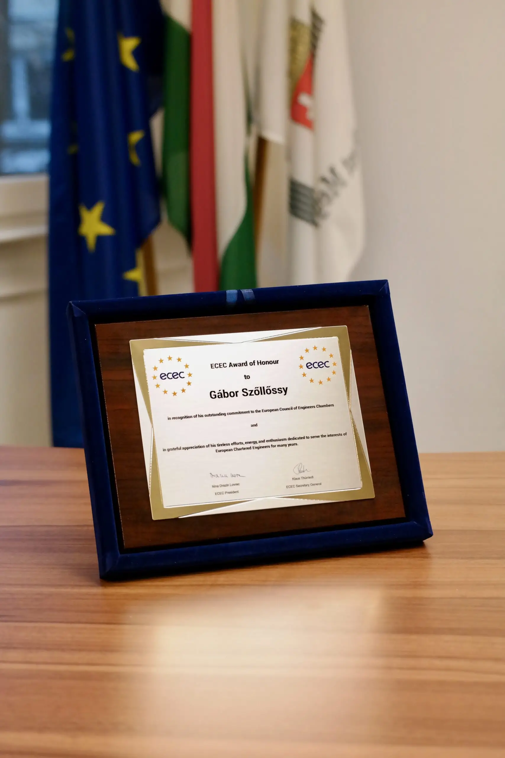 Főoldal 5 kamarai hírek 5 Az Európai Mérnöki Kamarák Tanácsa ECEC-díjjal ismerte el Szőllőssy Gábor munkáját
